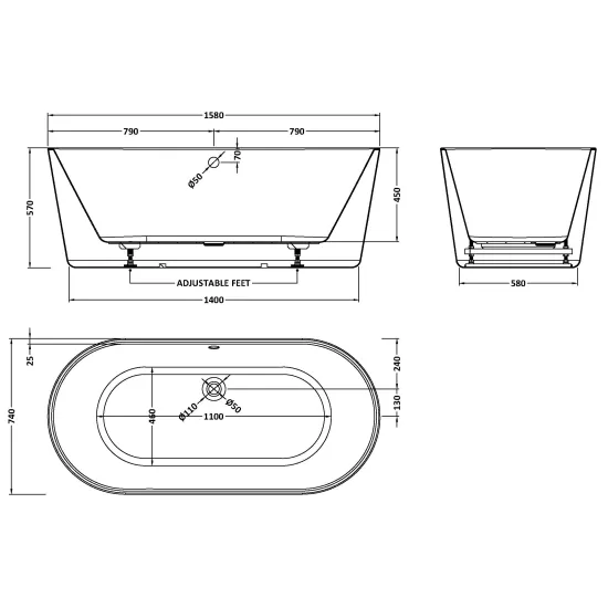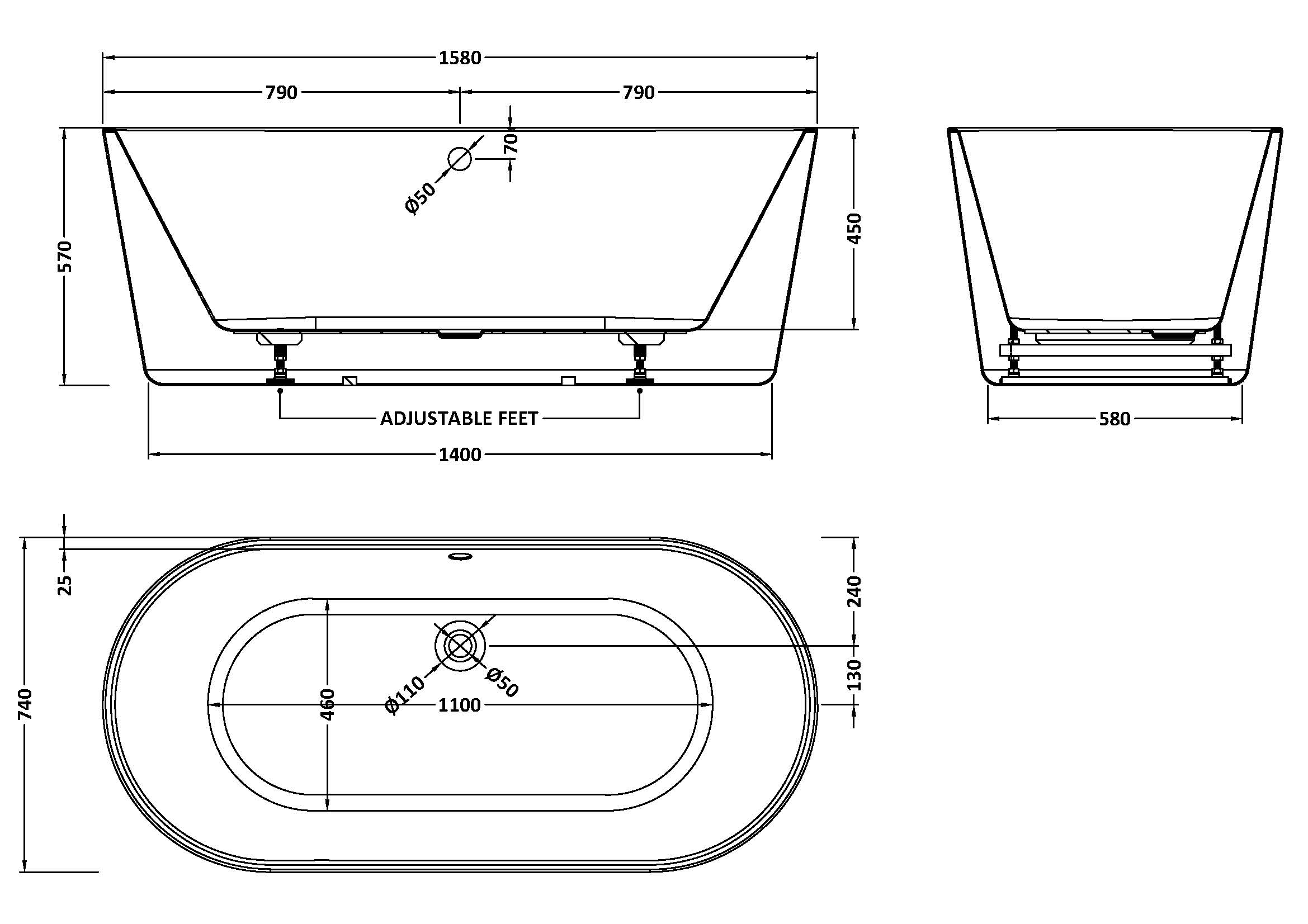 Viado Round Freestanding Bath Waste Included - 1580mm x 740mm