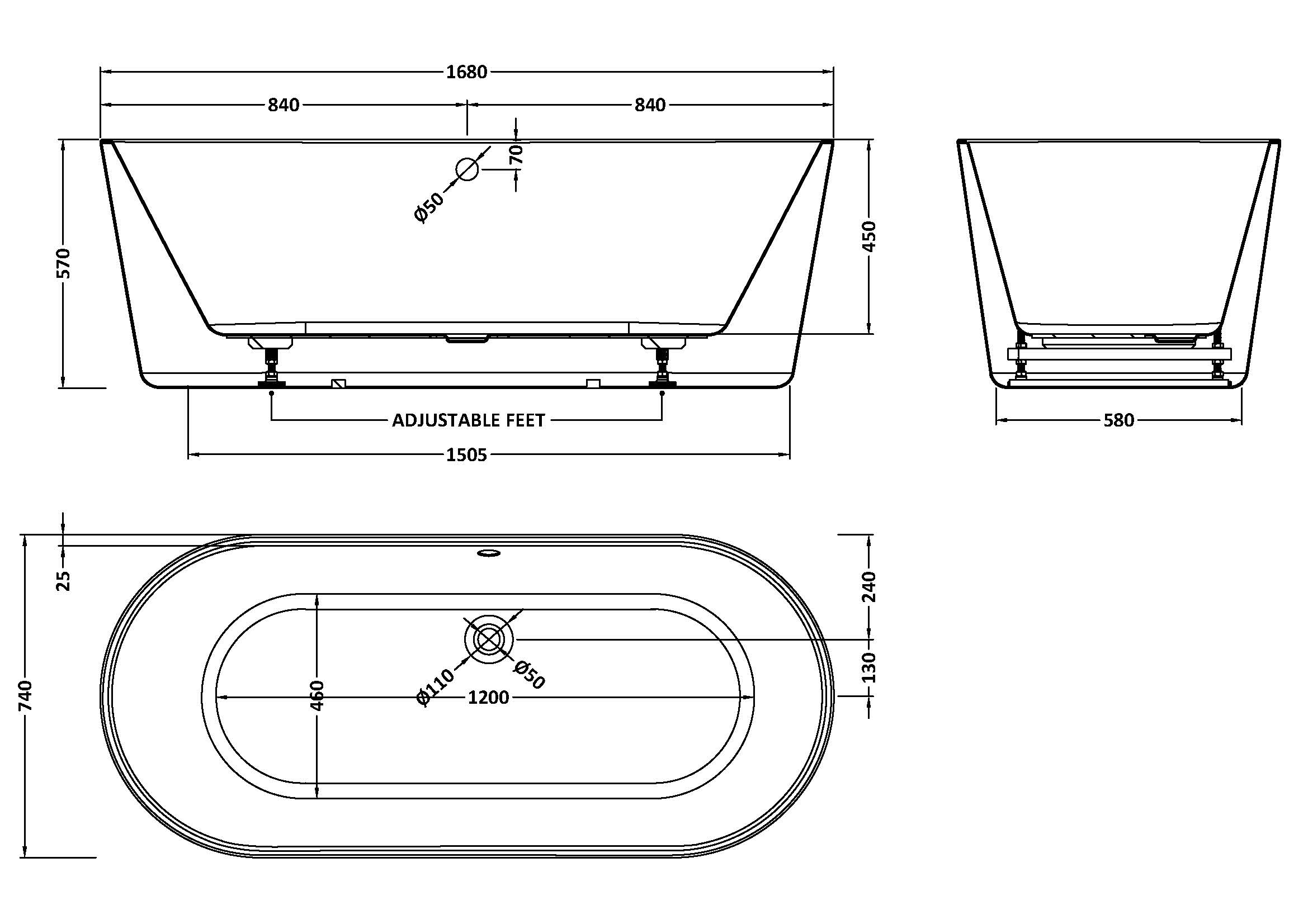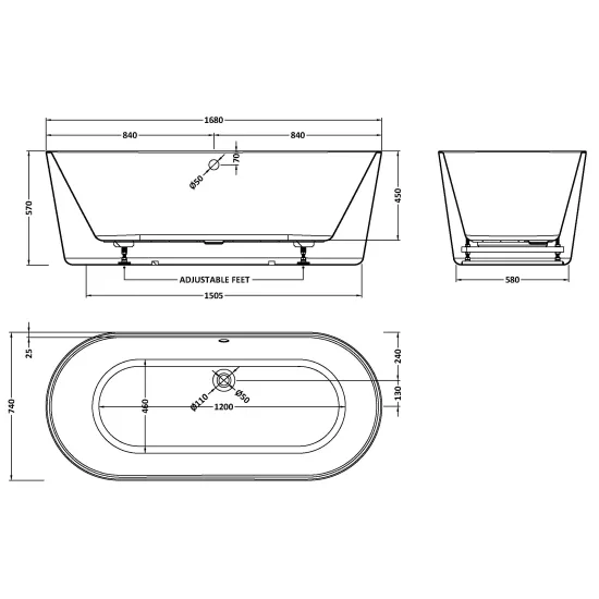 Viado Round Freestanding Bath Waste Included - 1680mm x 740mm