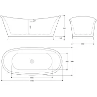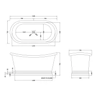 Moment 1600 x 650 x 720 Slipper Freestanding Bath