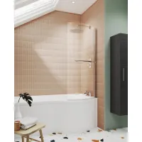 Nuie 1700mm x 850mm Right Hand White L-Shaped Shower Bath With Bath Screen, Side Panel & Leg Set