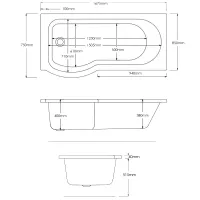 Nuie 1500mm x 850mm Right Hand P-Shaped Shower Bath With Legs