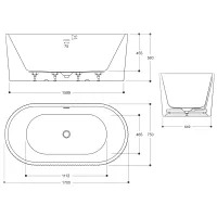 Omnia Oval Rimmed Freestanding Bath 1615mm x 760mm - No Waste