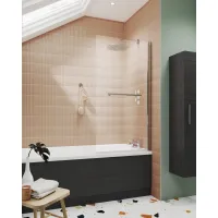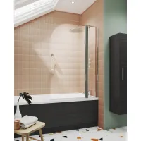 Nuie 1700mm L-Shaped Right Hand White Shower Bath With Chrome Screen & White Acrylic Side Panel
