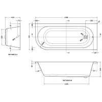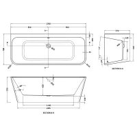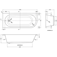 Soft Square Back to Wall Double Ended Bath Tub, 1700mm x 700mm
