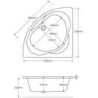 Freestanding Double Ended Boat Bath Tub, 1555mm x 745mm