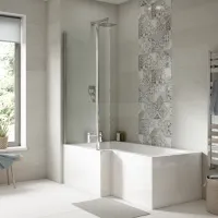 Nuie 1500mm Left Hand P-Shaped Shower Bath With Curved Screen, Side Panel & Leg Set