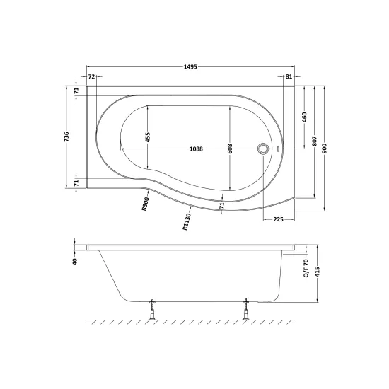 Nuie 1495mm Left-Hand B Shaped Shower Bath