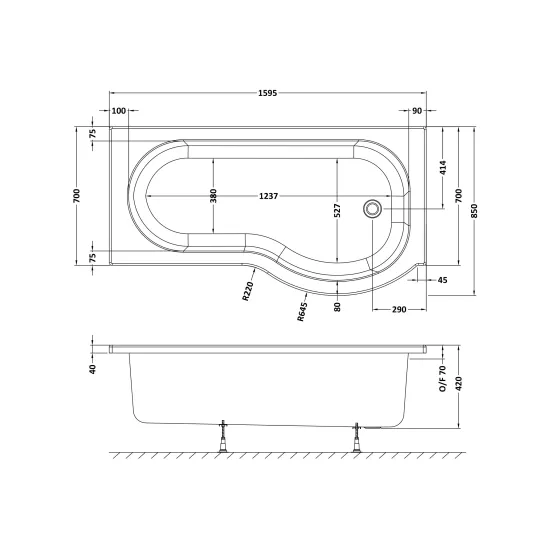Nuie 1600mm Left-Hand P Shaped Shower Bath With Legs
