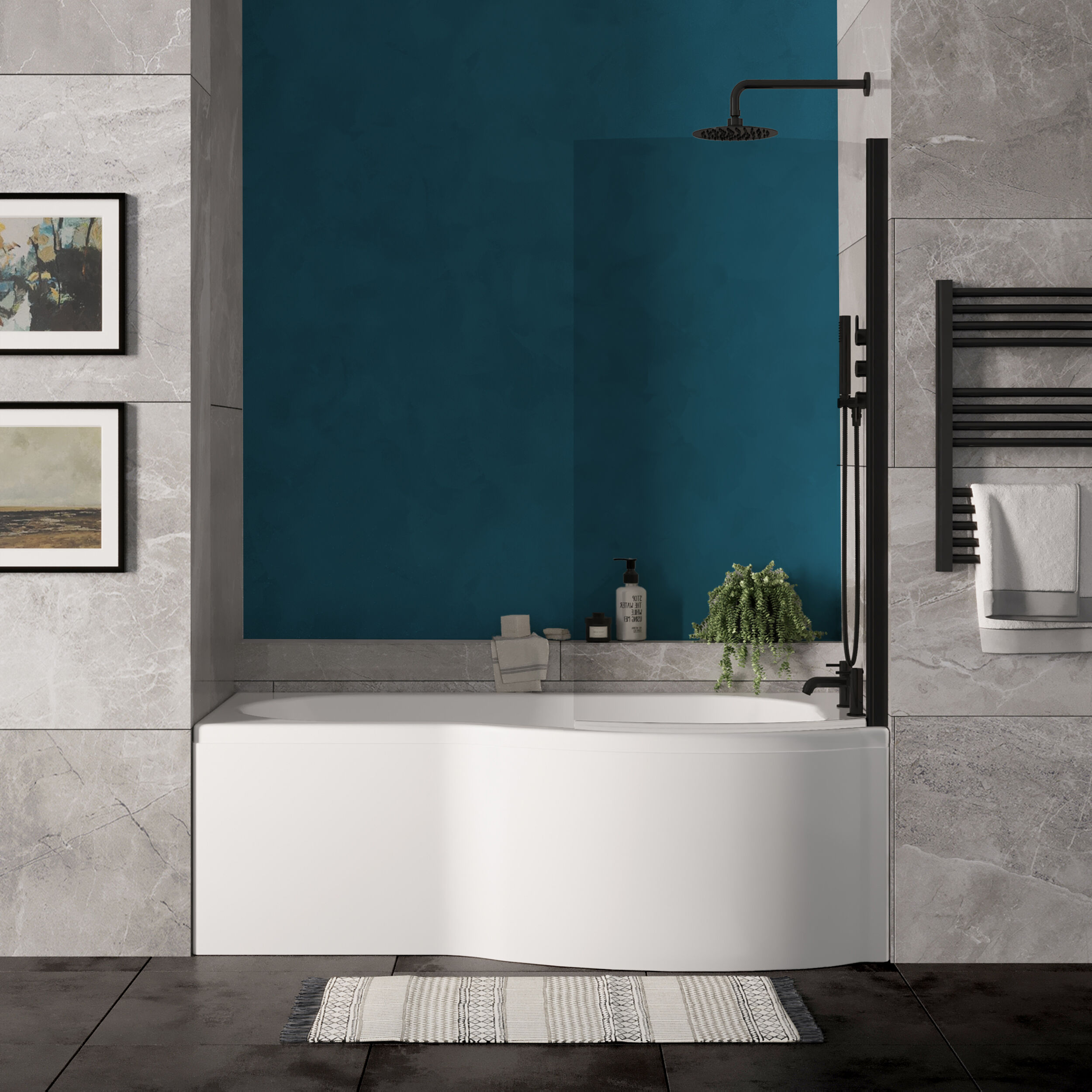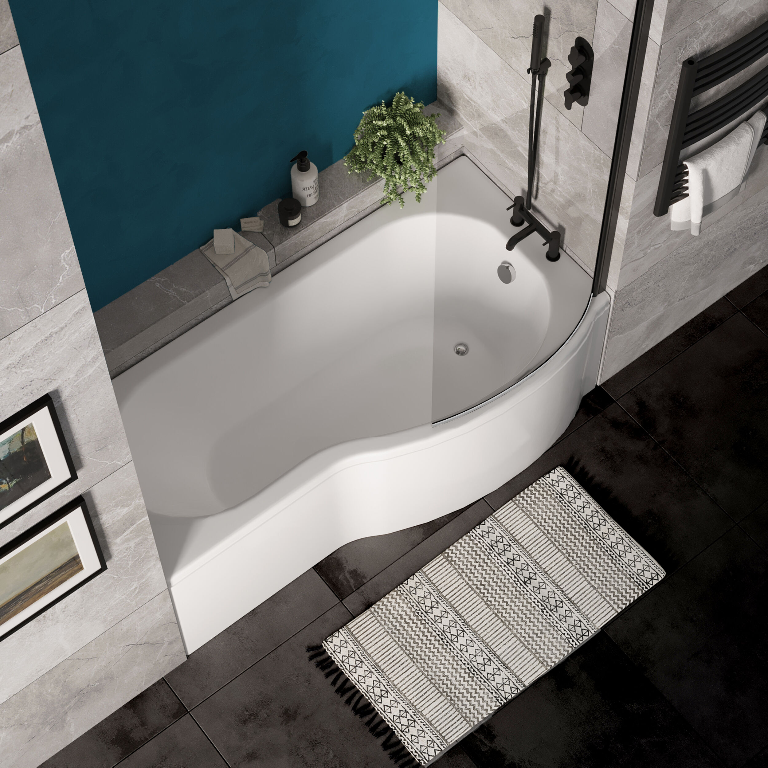 Nuie 1700mm Right Hand P-Shaped Shower Bath With Screen, Side Panel & Leg Set