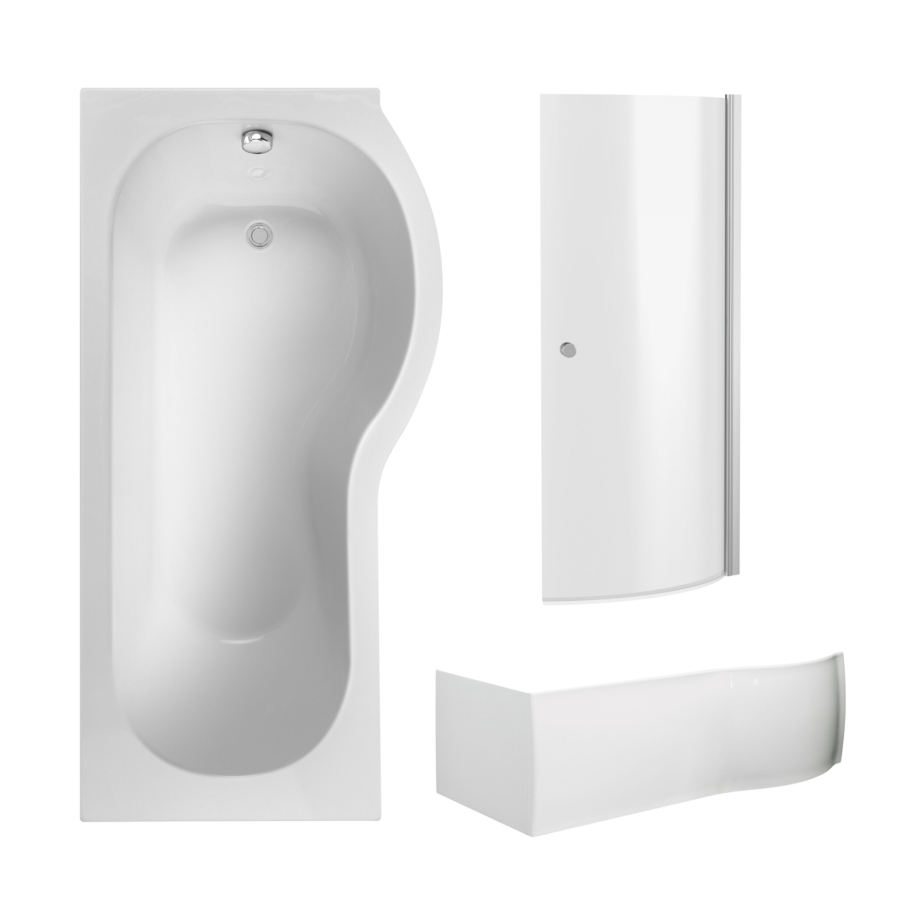 Nuie 1700mm Right Hand P-Shaped Shower Bath With Bath Screen & Side Panel