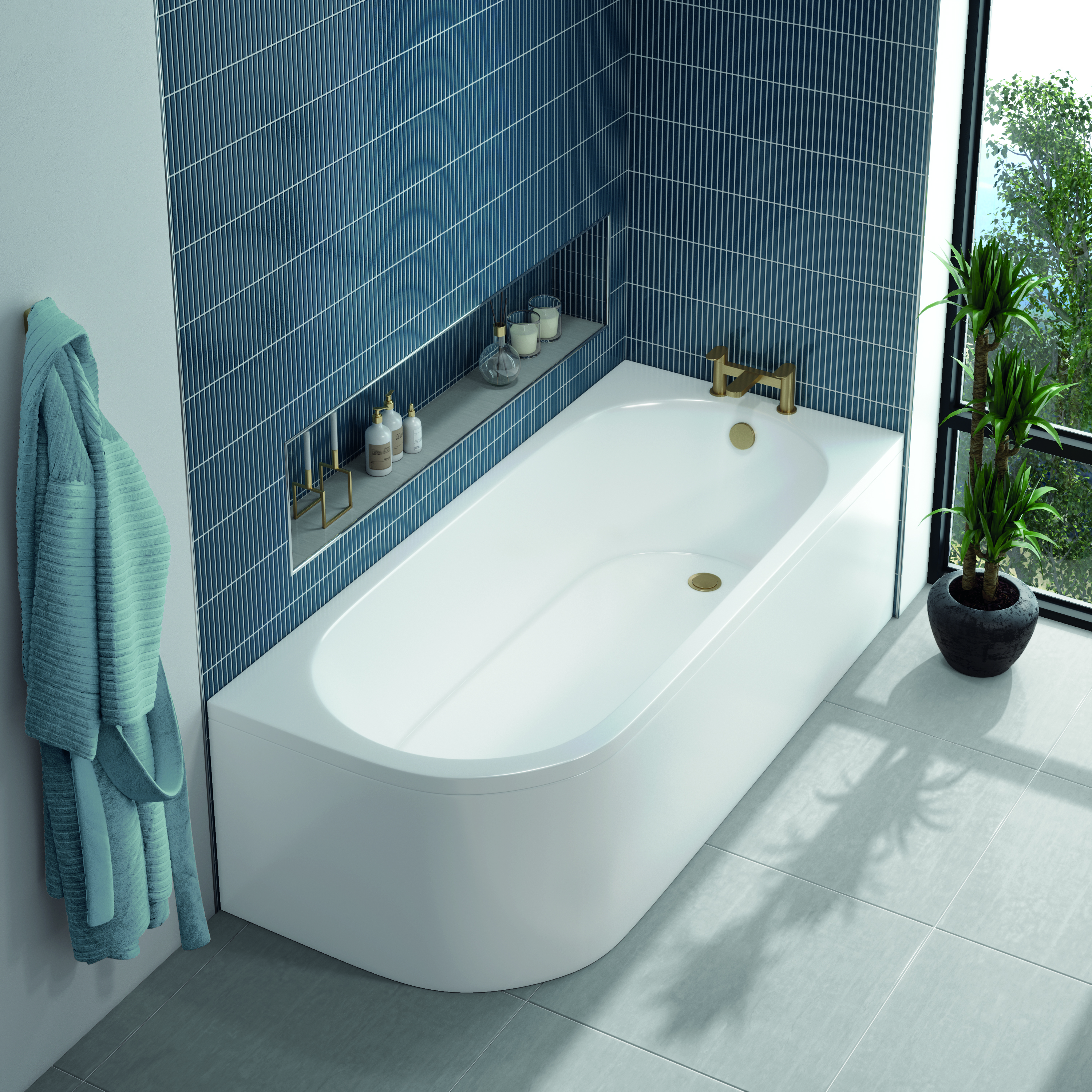 Bosley 1700Mm Shaped Bath, Right Hand - White