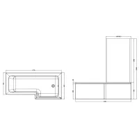 Nuie 1700mm Right Hand Square Shower Bath Set With Screen & Panel