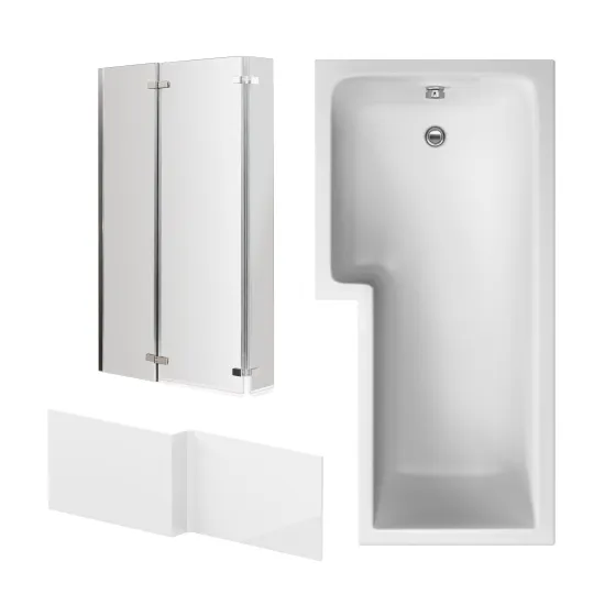 Includes 1700mm left hand shower bath, bath screen & gloss white acrylic side panel