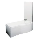 Nuie 1700mm Left Hand P-Shaped Shower Bath Set Including Curved Screen, Side Panel & Adjustable Legs