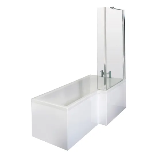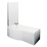 Nuie 1500mm Left Hand B-Shaped Shower Bath Set With Curved Screen & Side Panel