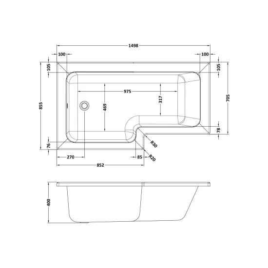 Nuie 1500mm Left-Hand Square Shower Bath