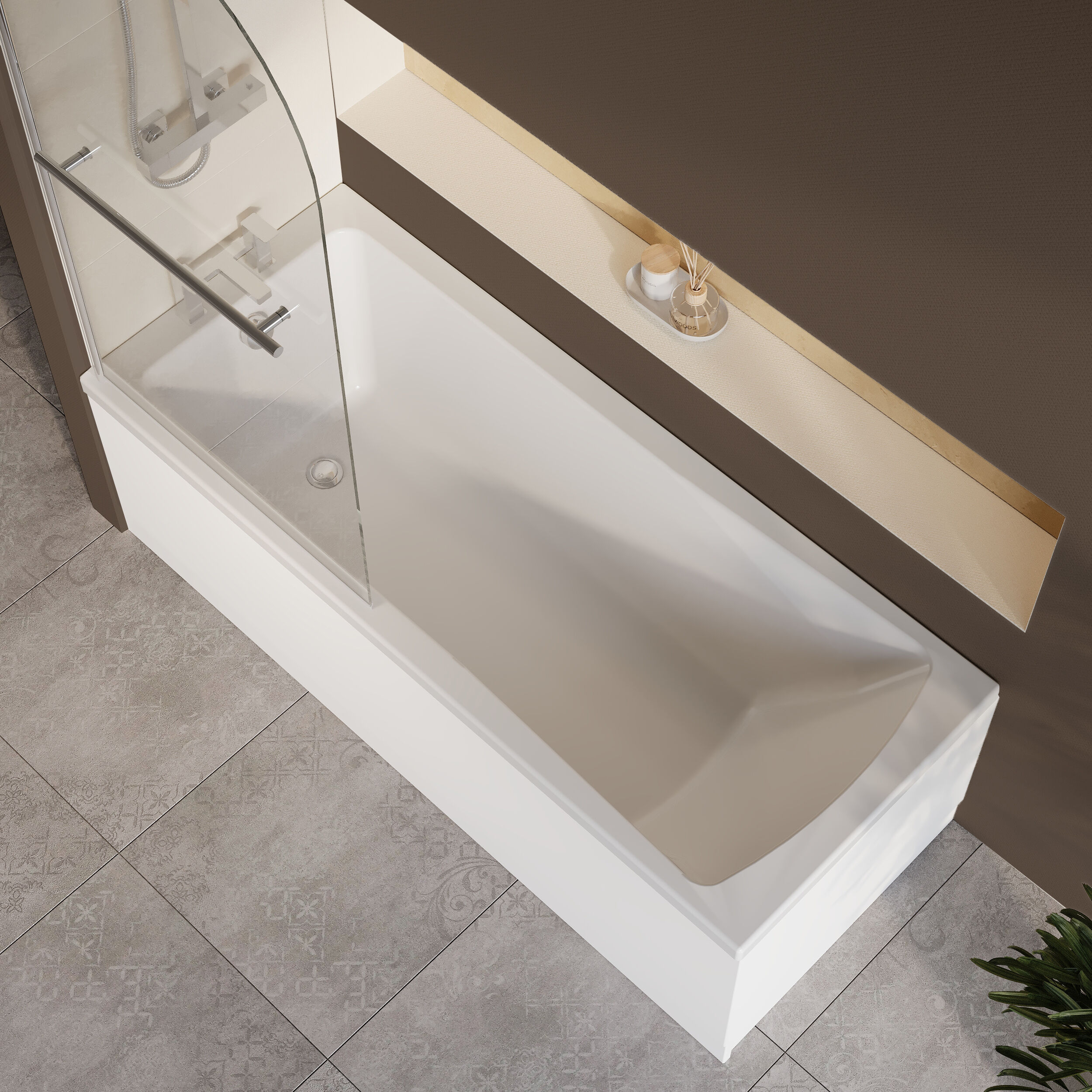 Nuie 1700mm x 700mm White Square Single Ended Bath with Screen, Side Panel & Leg Set
