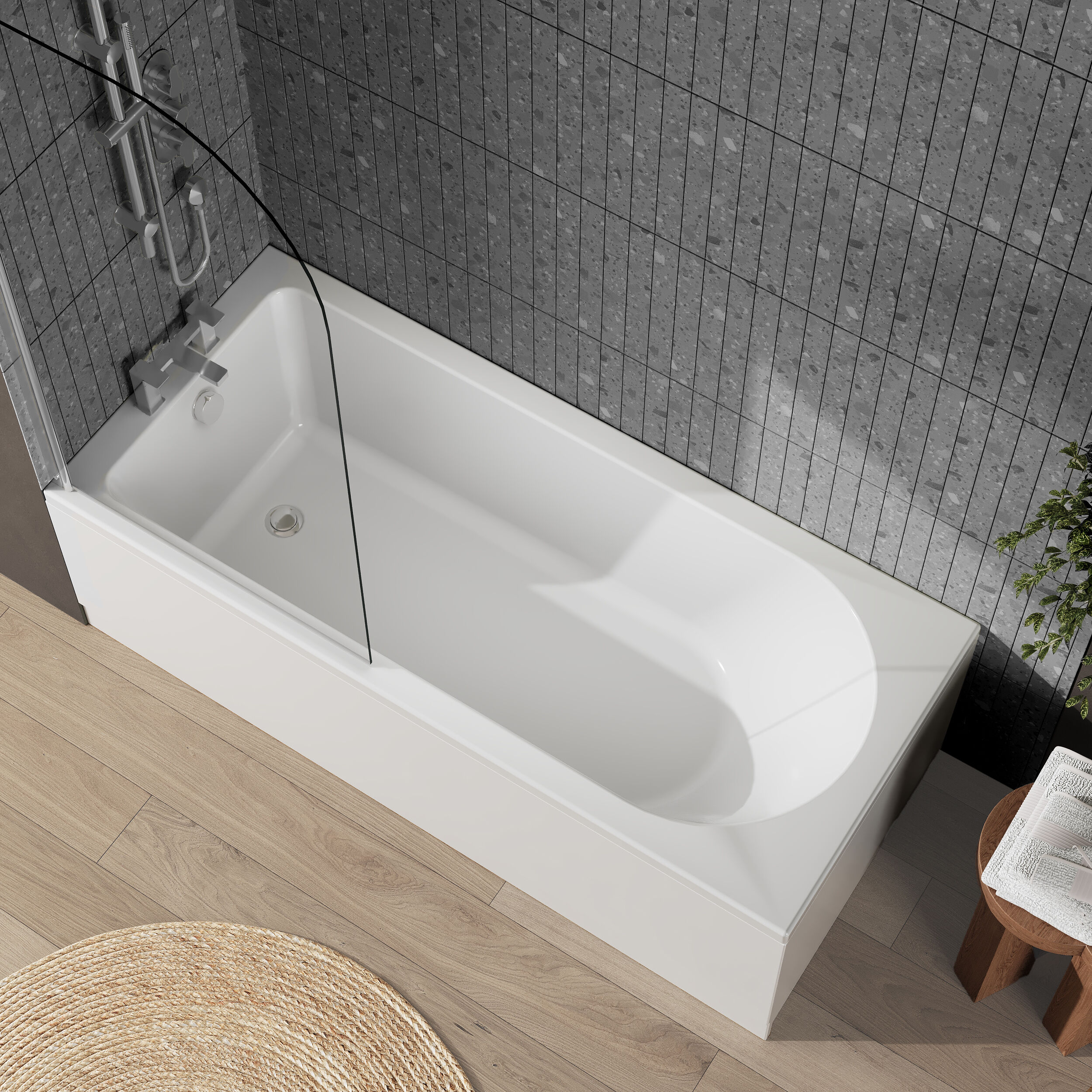 Nuie 1700mm x 750mm Bath with Panel & Screen