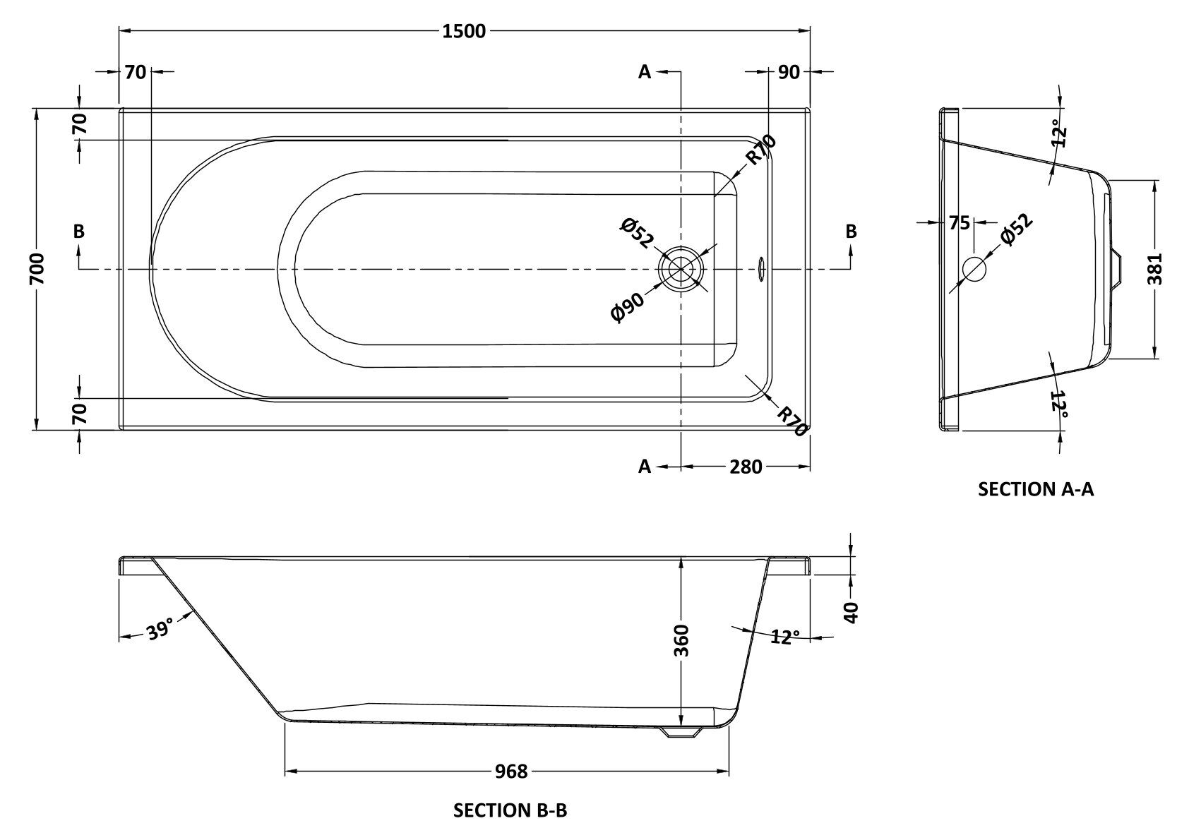 Synergy Berg Solo 1500mm Standard Single Ended Bath