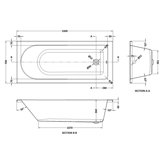 Round single ended bath.Un-drilled for taps.Supplied with leg set.Suitable for use with bath screens.Choose from our range of bath panels to create the perfect look.Manufactured from Eternalite - Sanitary grade 4mm Acrylic.Eternalite finish means the colour will not rub off or fade over time.Retains heat for up to 30 minutes longer than a standard bath