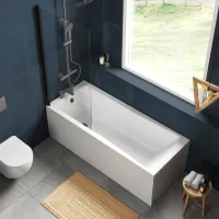 Nuie 1700mm x 750mm White Straight Round Single Ended Bath with Screen & Side Panel