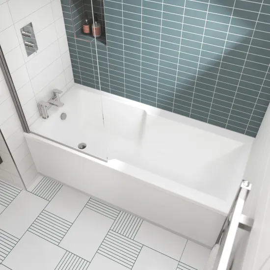 nuie Shower Baths Square Straight Shower Bath 1700mm x 750mm - White