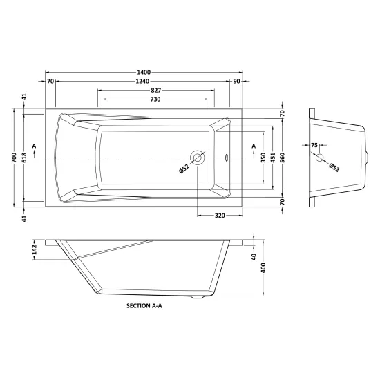 1400mm x 700mm Single Ended 11 Jet Hydrotherapy Bath with Light - Chome