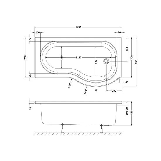 P Shaped shower whirlpool bath designed and built to the highest quality