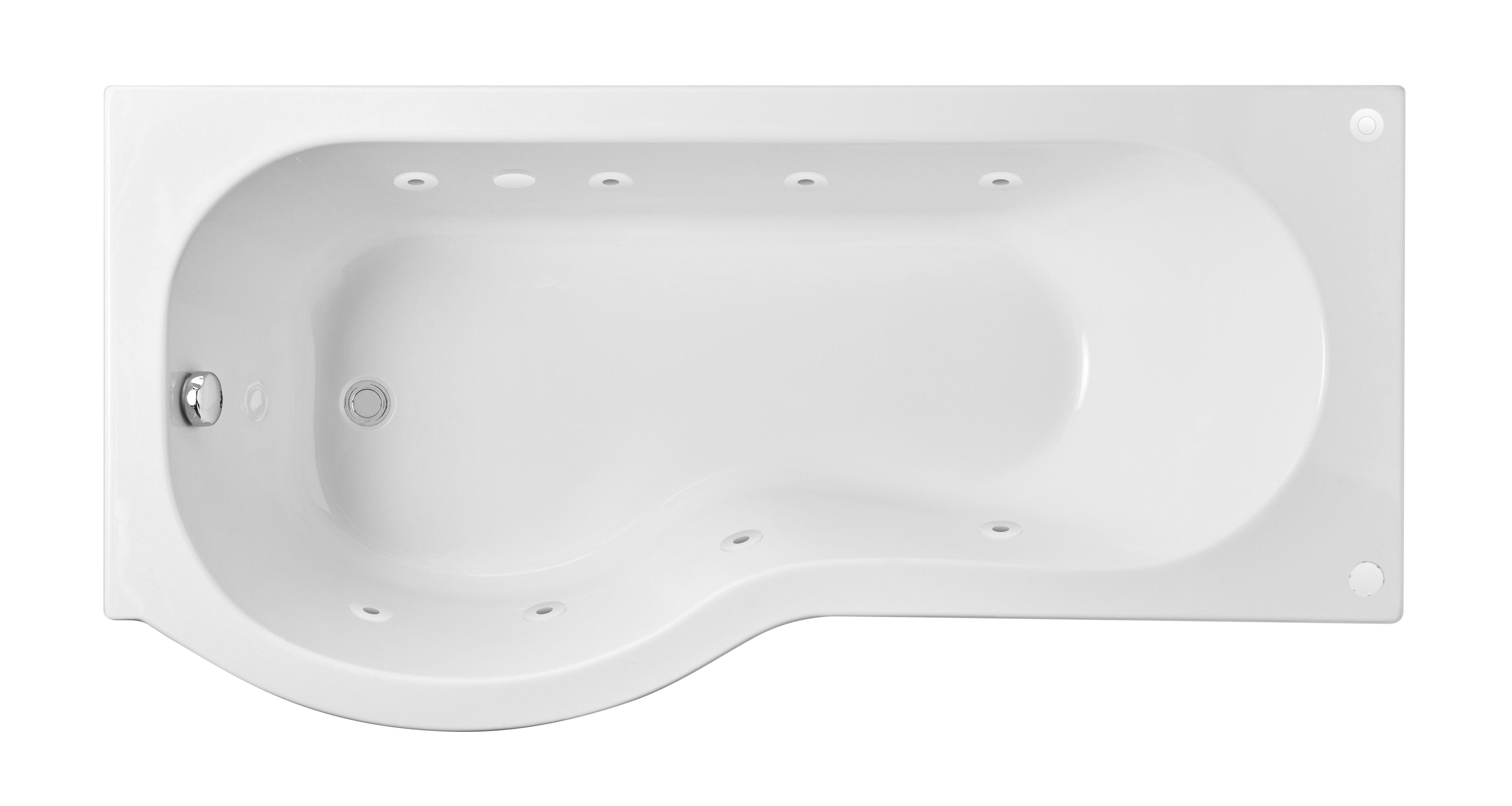 nuie choice 1600mm P Shape 8 Jet Whirlpool Bath Left Hand - White