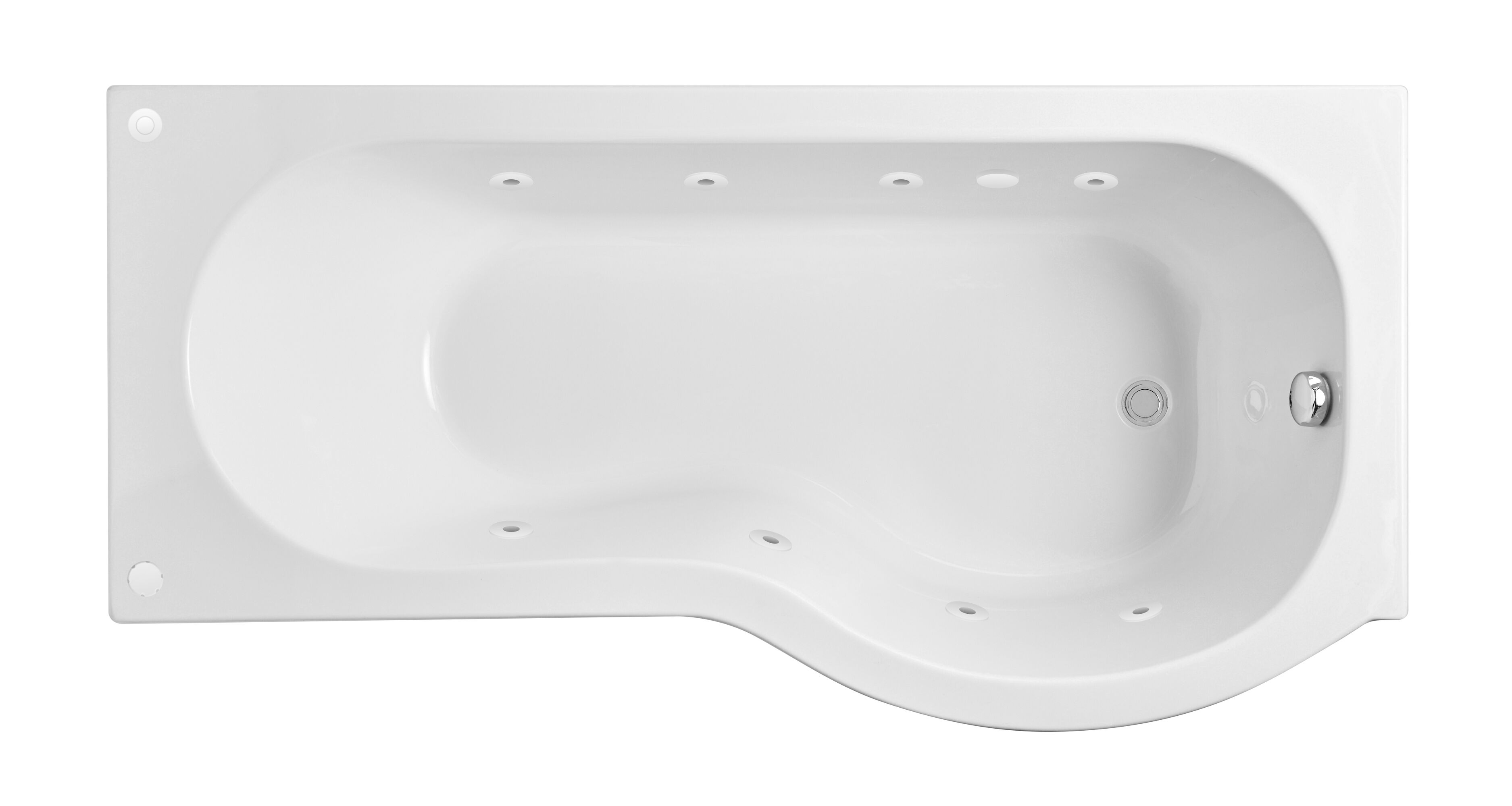 nuie choice 1600mm P Shape 8 Jet Whirlpool Bath Right Hand - White