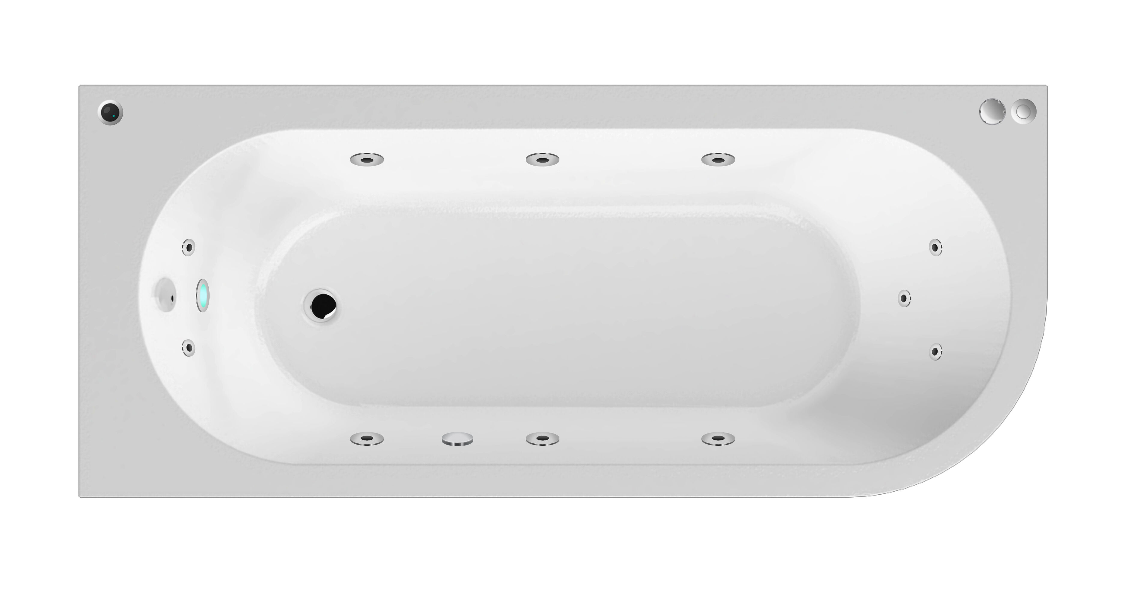 nuie choice 1700mm Curved 11 Jet Whirlpool Bath with Light Left Hand - Chrome
