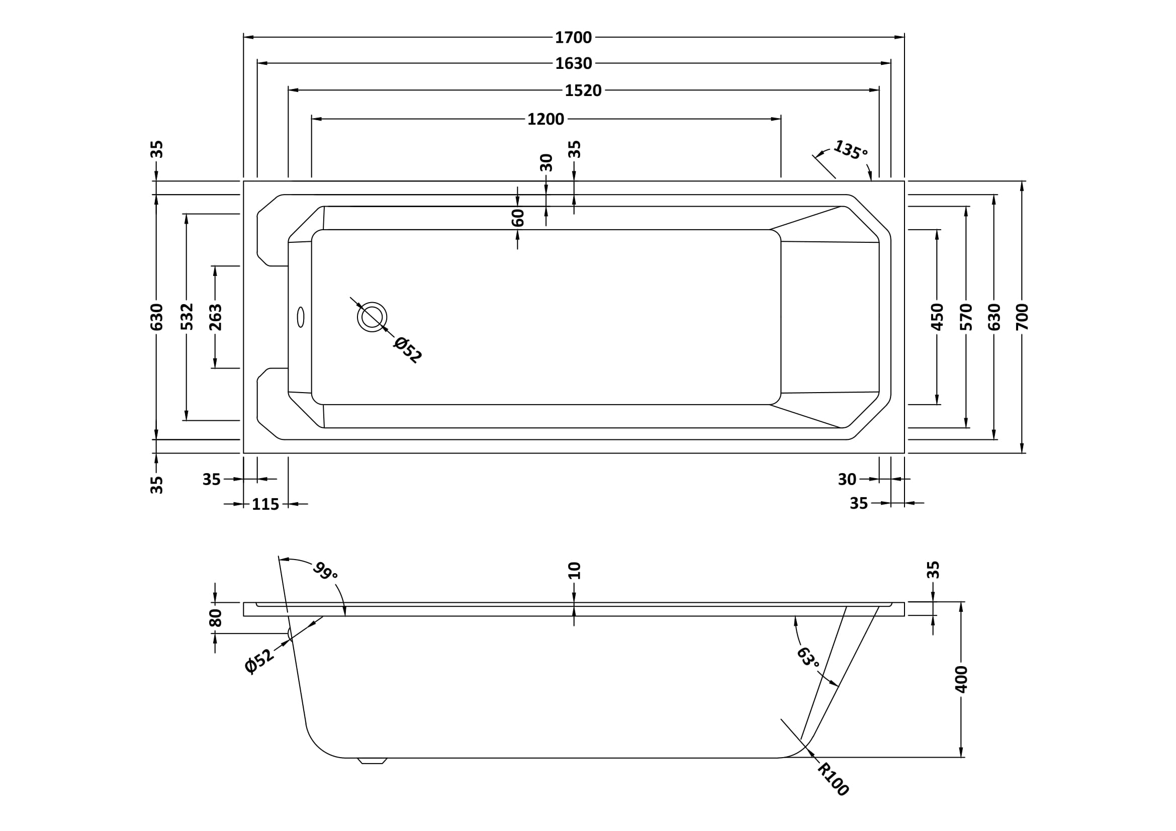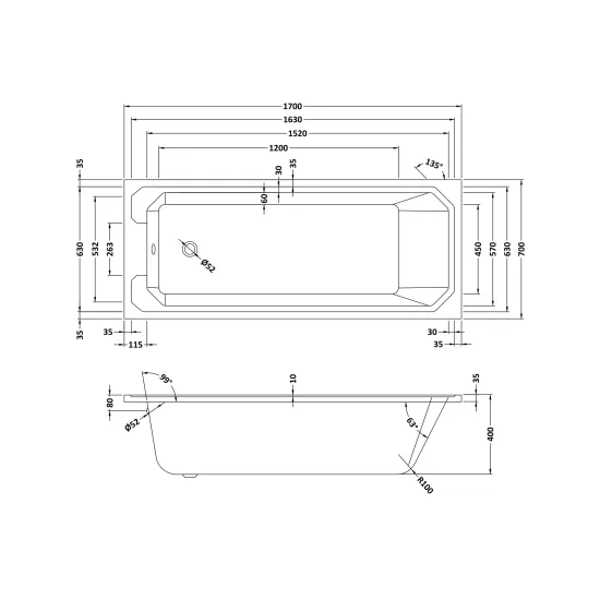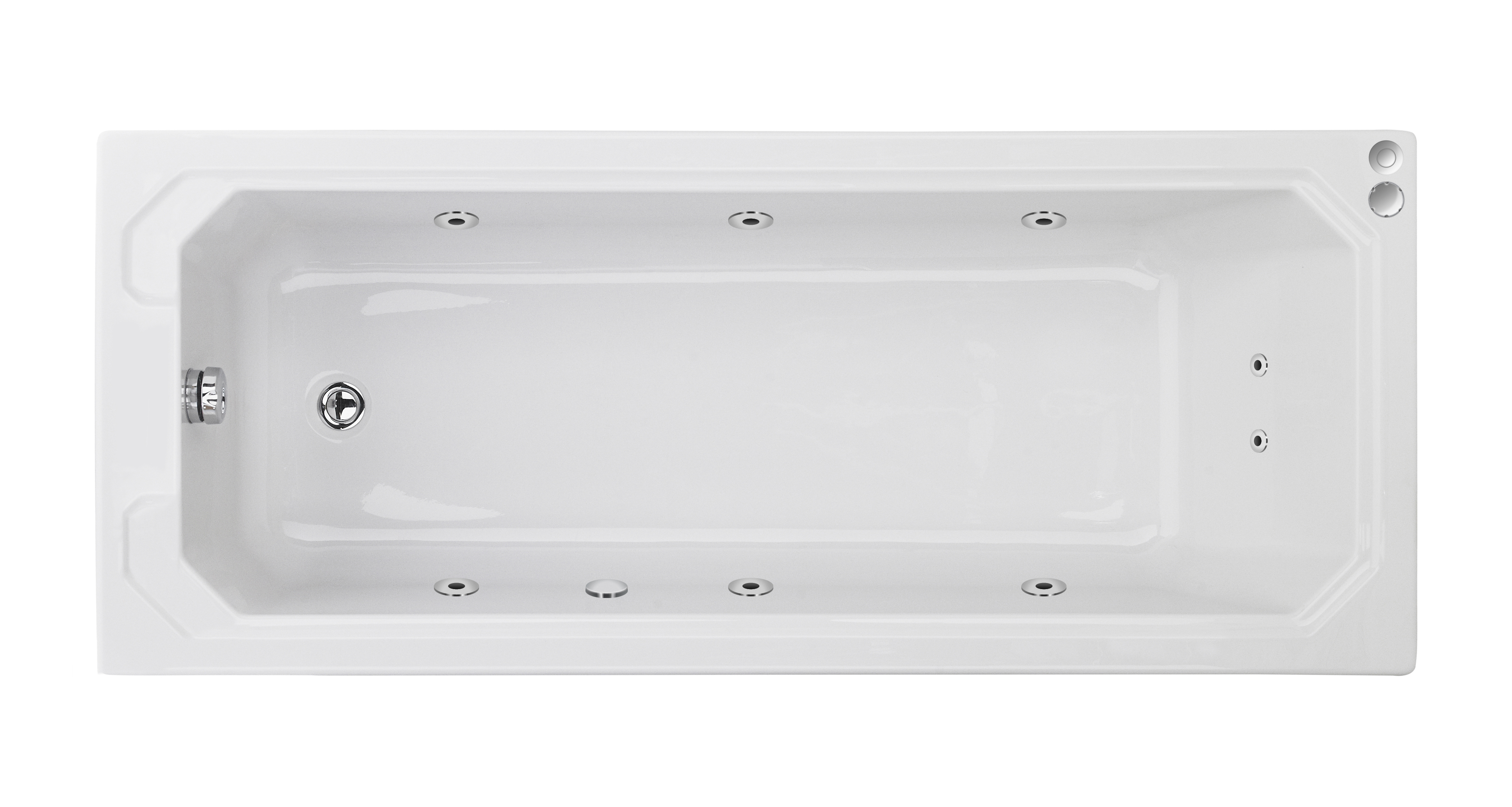 nuie choice 1700mm x 700mm Art Deco 8 Jet Whirlpool Bath - Chrome