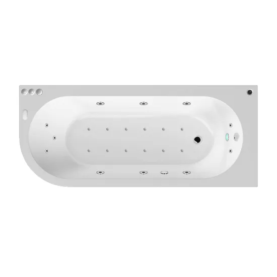 nuie choice 1700mm x 725mm Curved 11 Jet Hydrotherapy Bath with Light Right Hand - Chome