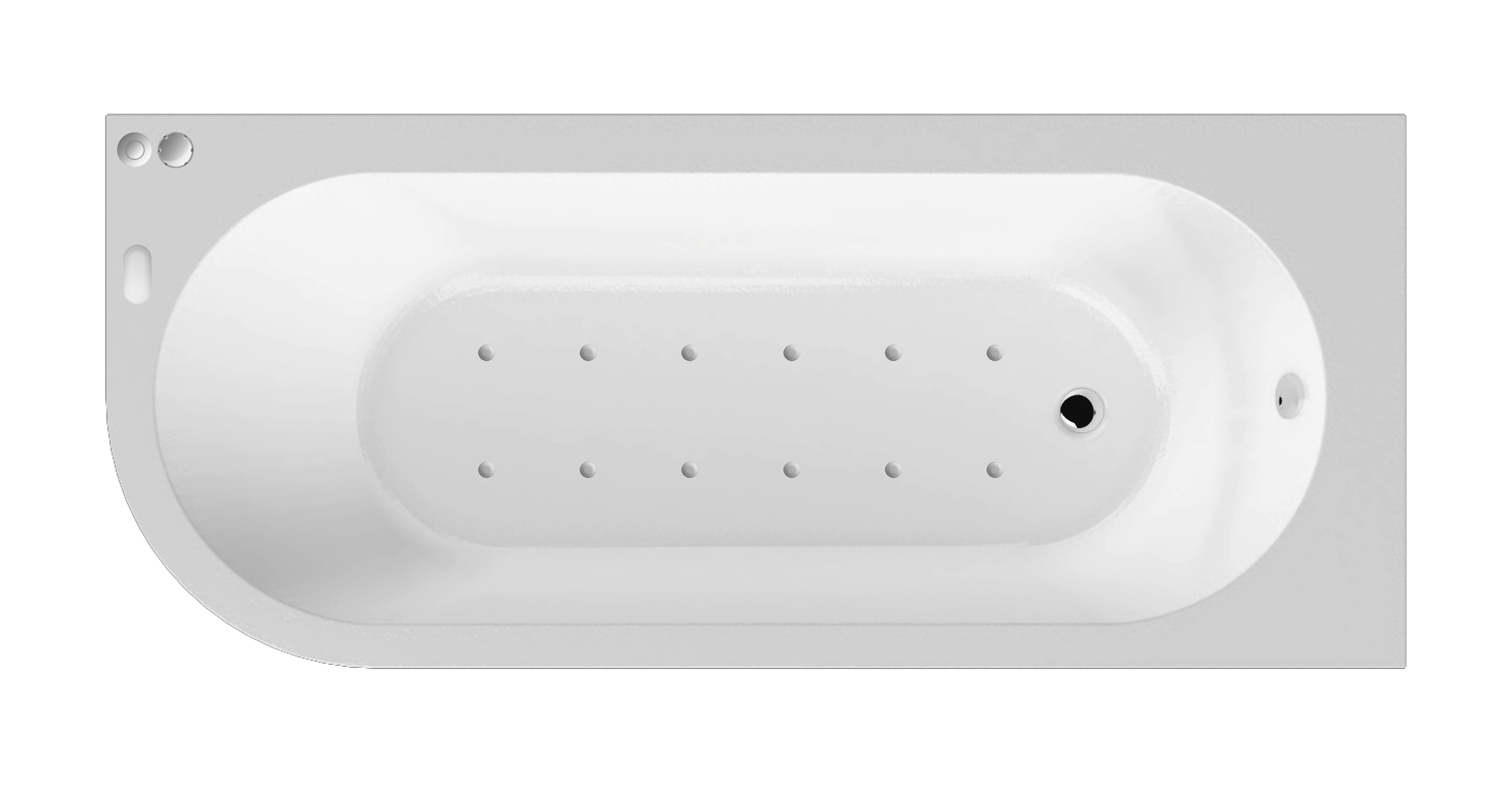 Curved corner whirlpool bath available in left and right hand configurations