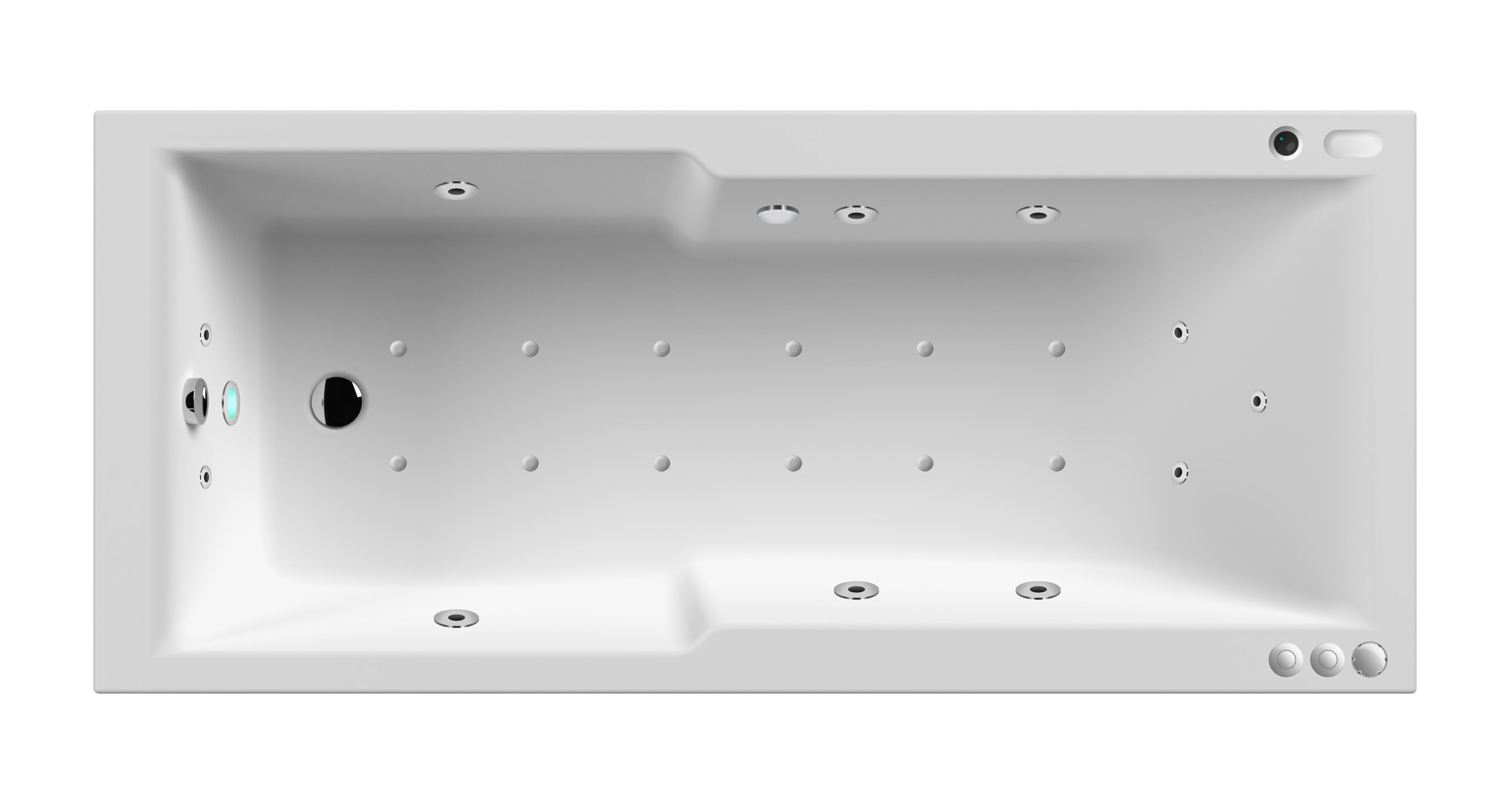 nuie choice 1700mm x 750mm 11 Jet Hydrotherapy Straight Sshower Bath with Light - Chome