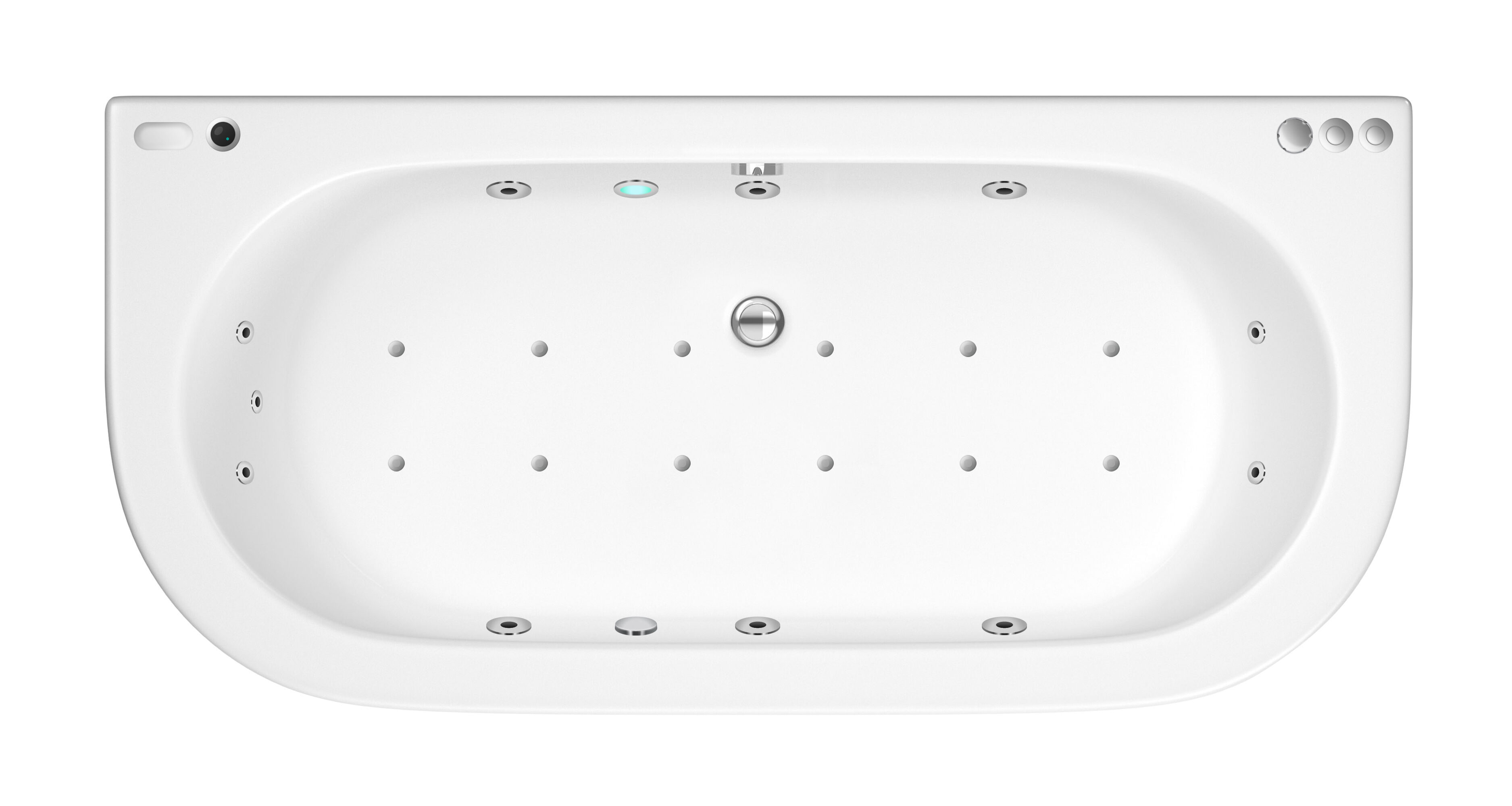 Curved back to wall whirlpool bath designed and built to the highest quality from sanitary grade acrylic