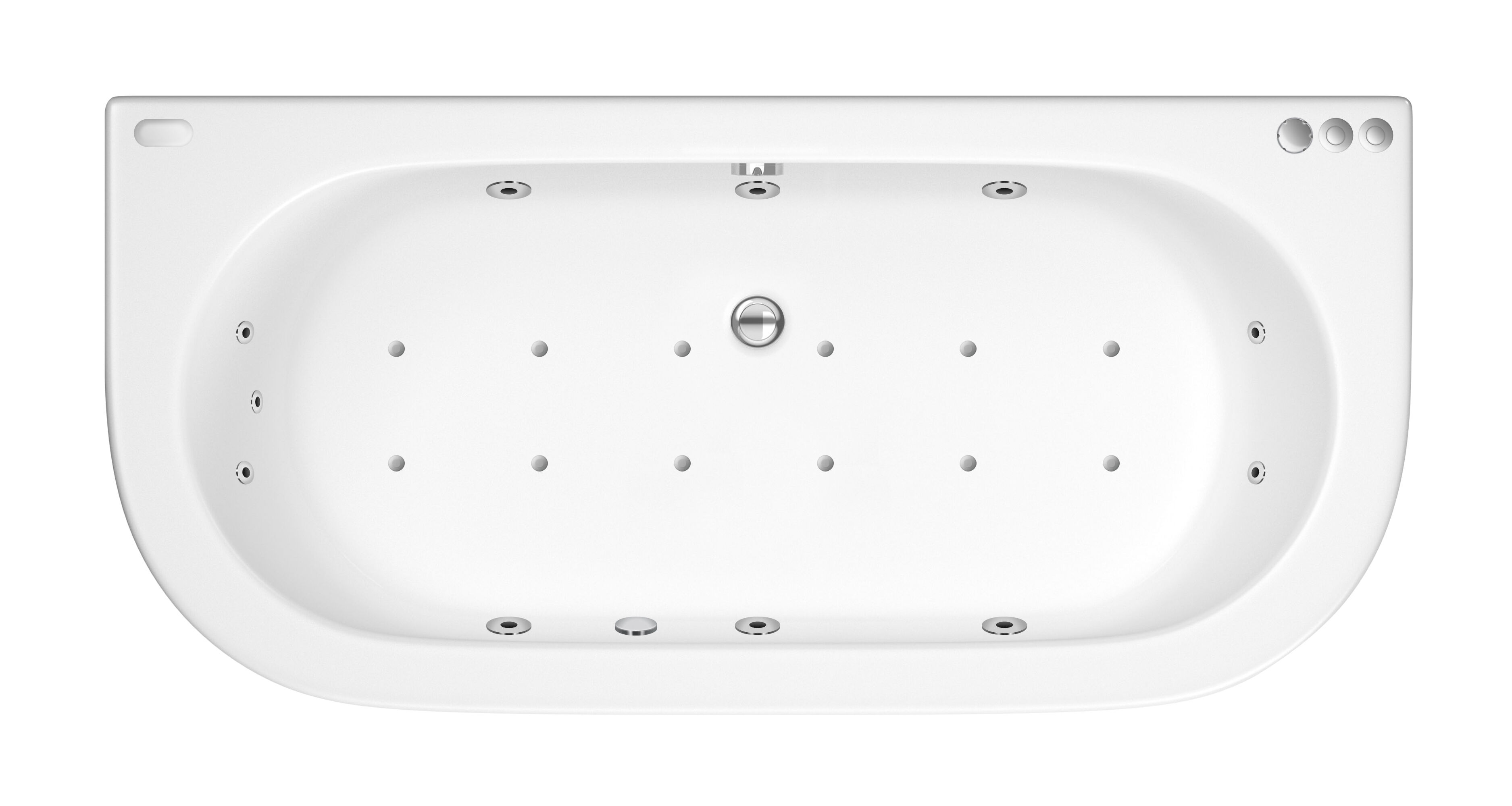 Curved back to wall whirlpool bath designed and built to the highest quality from sanitary grade acrylic