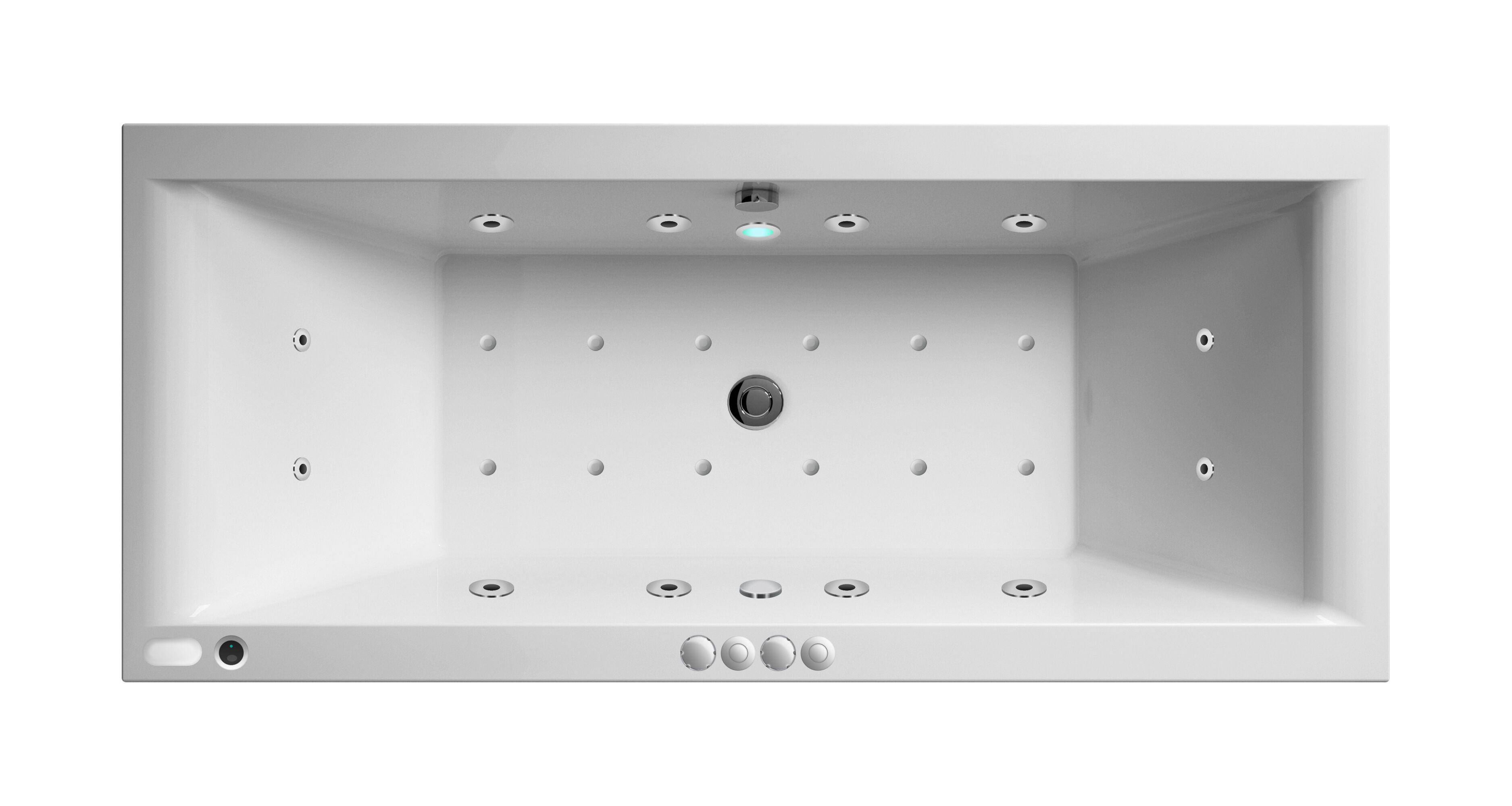 1700mm x 750mm Square Double Ended 12 Jet Hydrotherapy Bath with Light - Chome