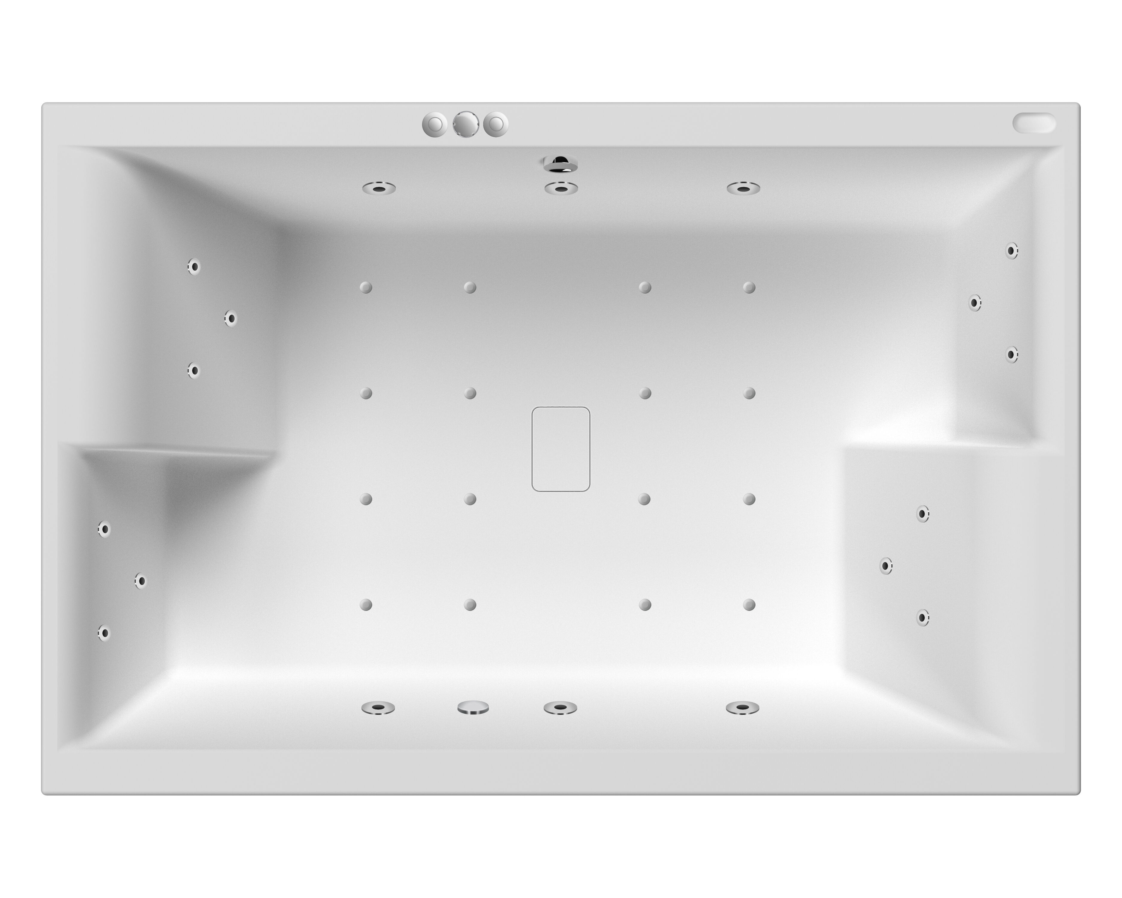 Square double ended whirlpool bath designed and built to the highest quality from sanitary grade acrylic
