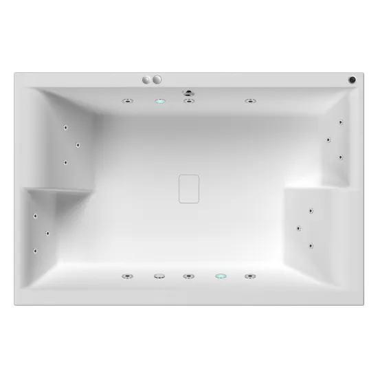 Square double ended whirlpool bath designed and built to the highest quality from sanitary grade acrylic