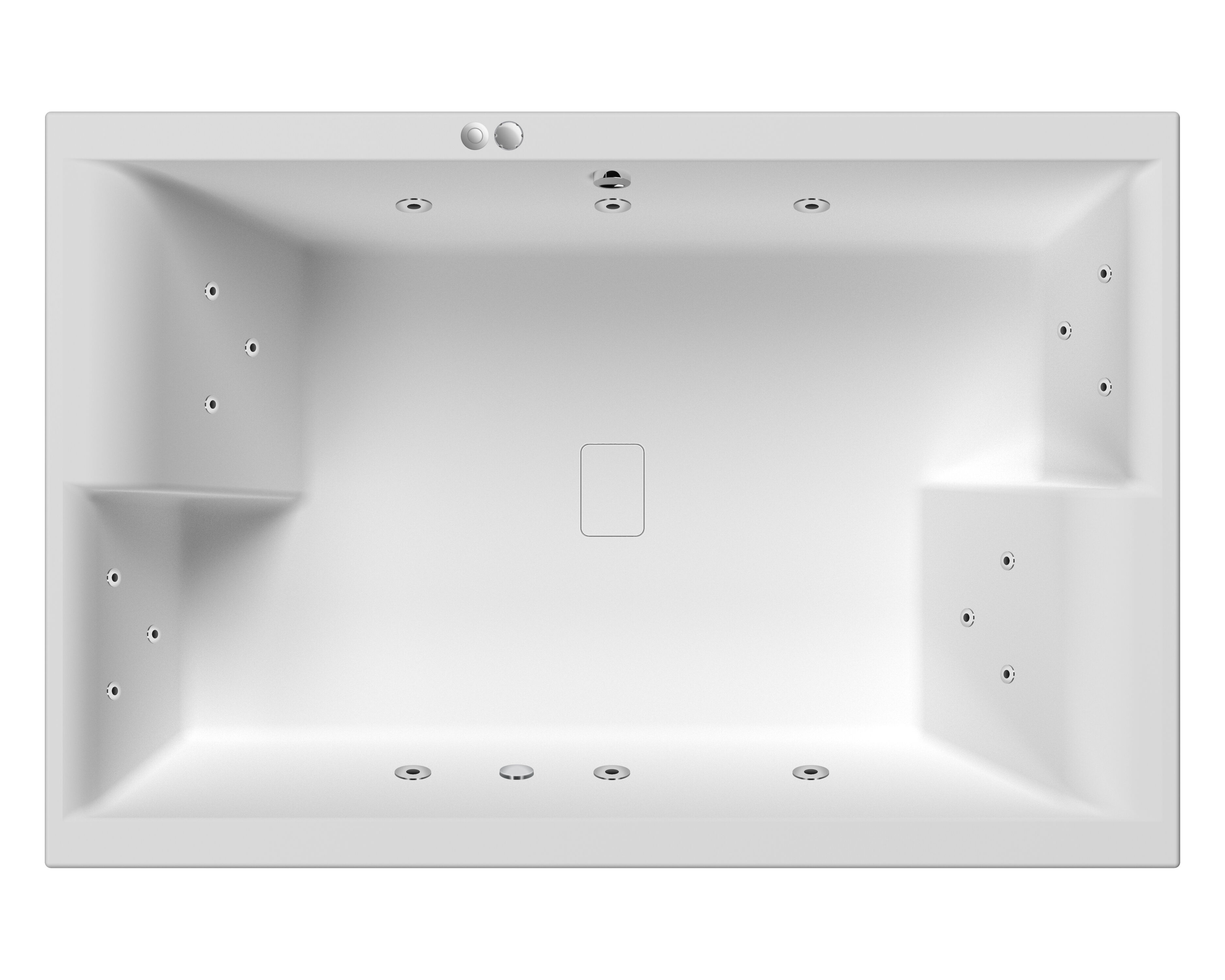 Square double ended whirlpool bath designed and built to the highest quality from sanitary grade acrylic