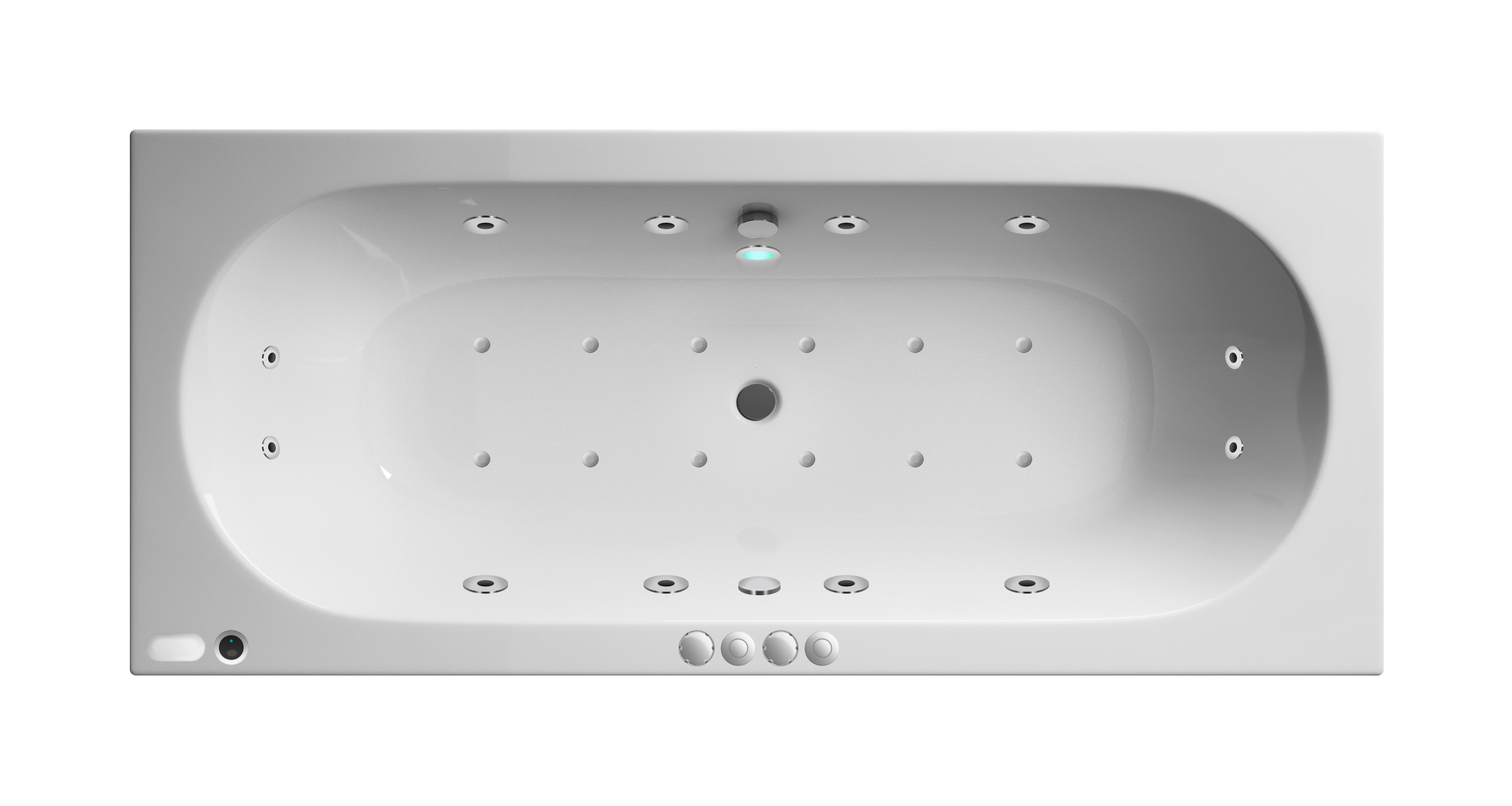 nuie choice 1800mm x 800mm Round Double Ended 12 Jet Hydrotherapy Bath with Light - Chome