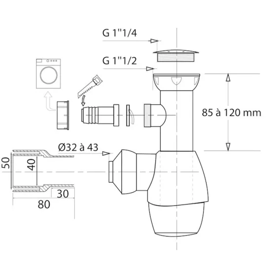 Wirquin 31190002 All In One Bottle Trap & Seal