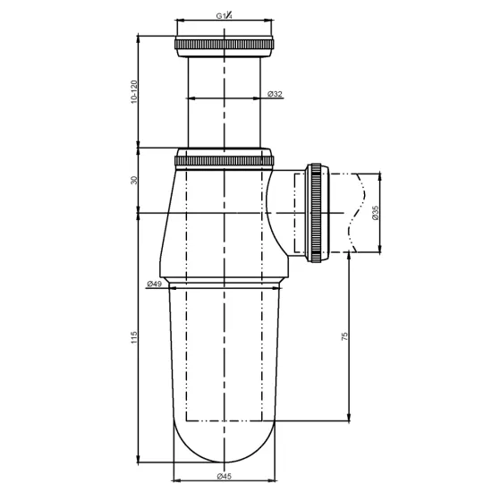 Wirquin Macdee PBT41CP 1.1/4'' Chrome Brass Bottle Trap