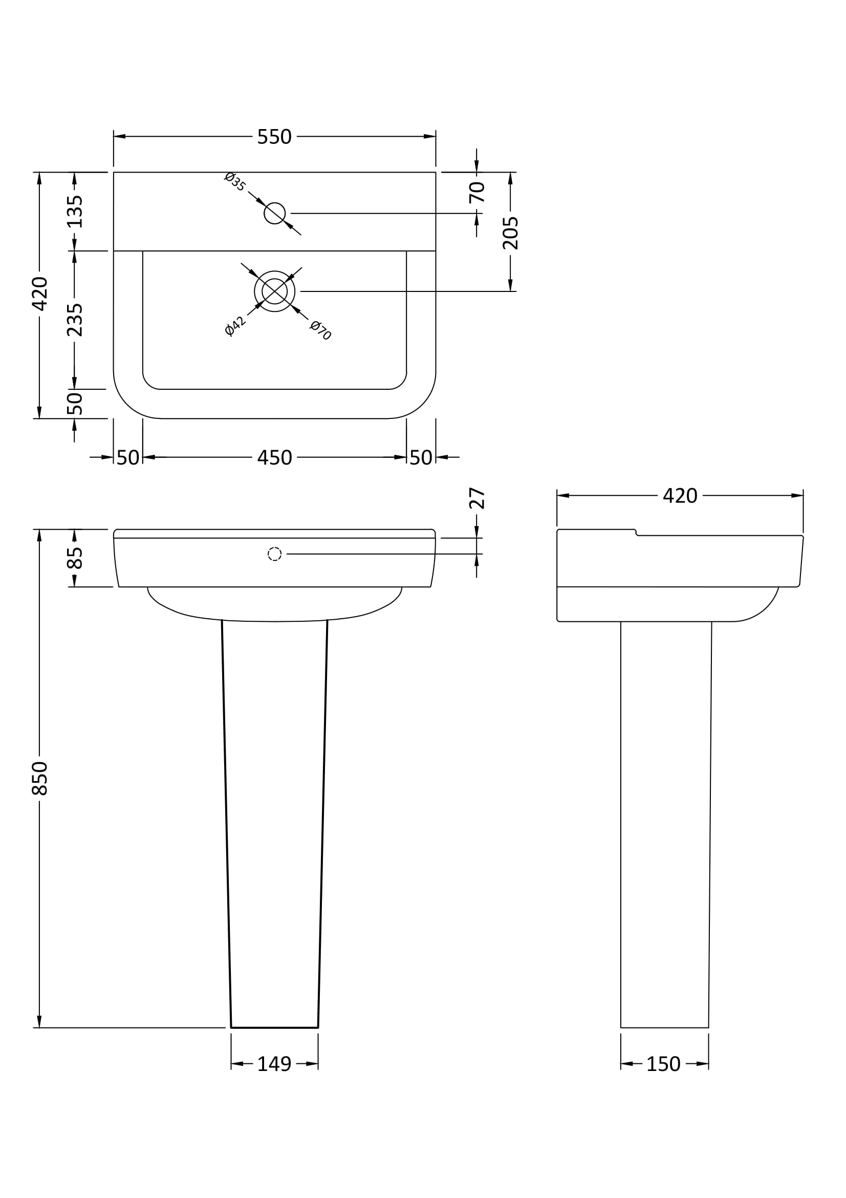 Hudson Reed Maya 550mm Basin & Pedestal