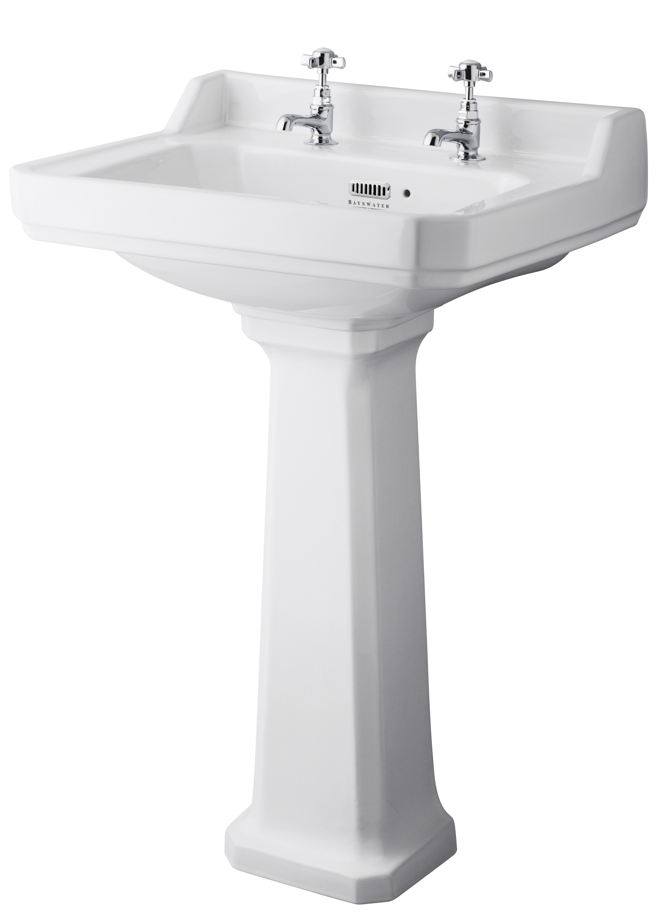 Bayswater Fitzroy 595mm Basin 2TH Including Comfort Height Pedestal - White