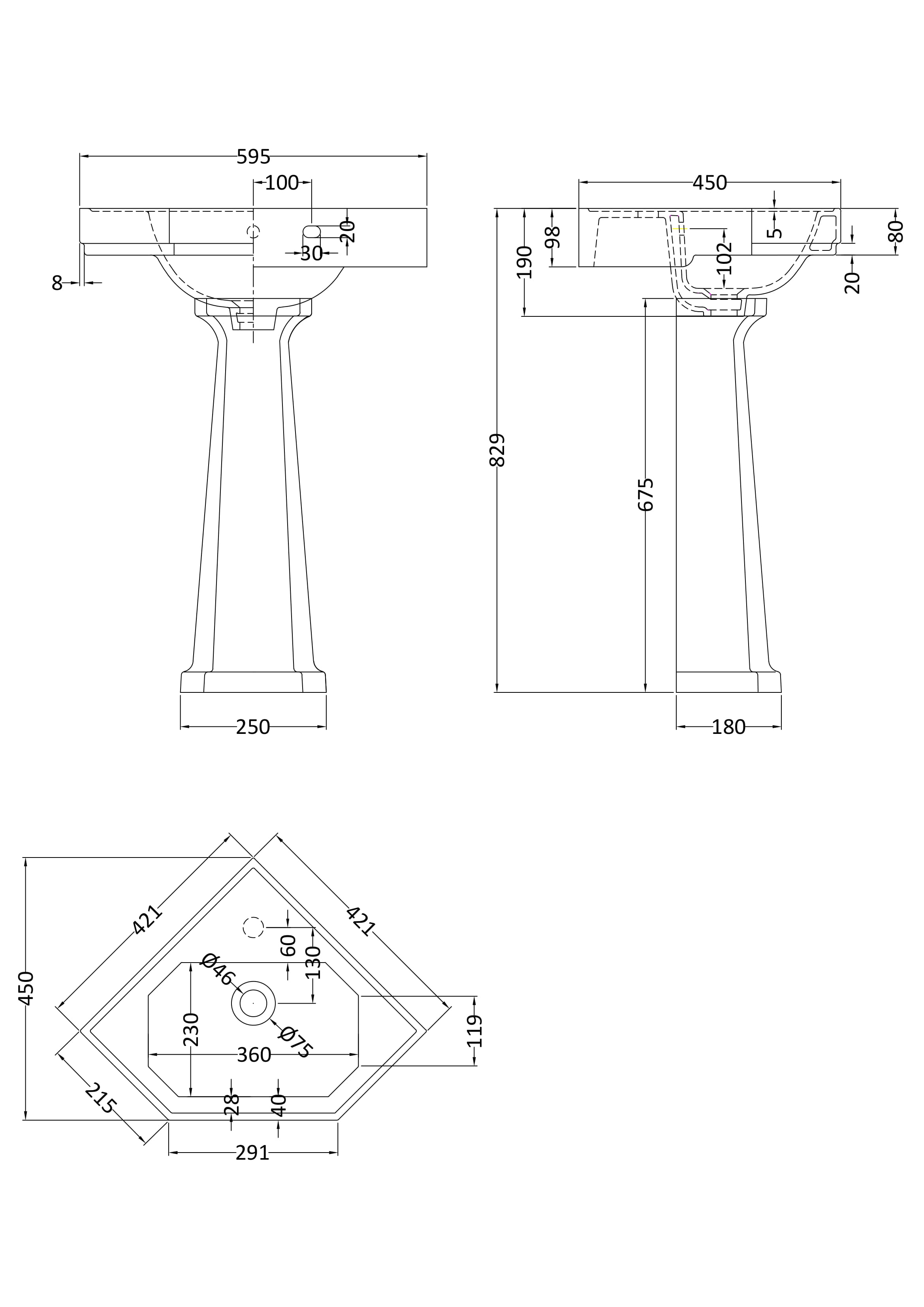 Bayswater Fitzroy Corner Basin Including Pedestal - White