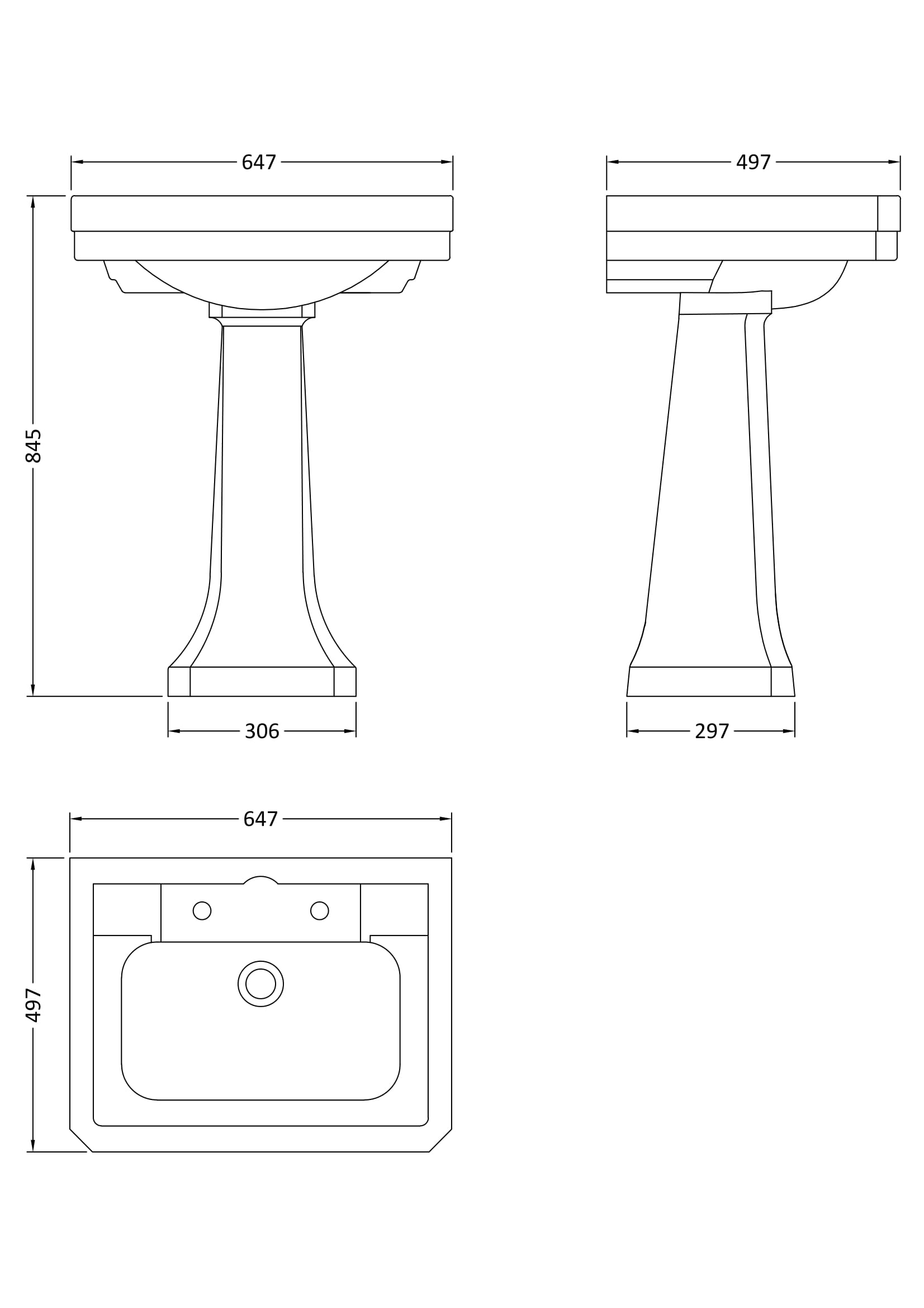 Nuie Lux Hunton 640mm 2 Tap Hole Basin & Pedestal