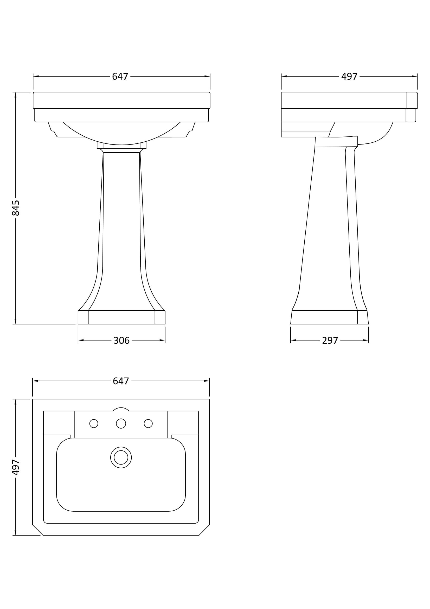 Nuie Lux Hunton 640mm 3 Tap Hole Basin & Pedestal