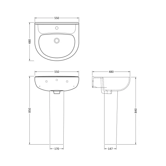 Nuie 550mm Pedestal Basin